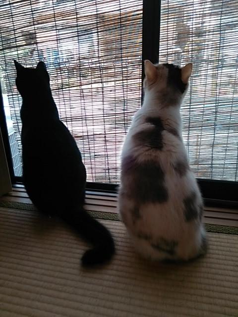 家の中でバードウオッチング中のお二人さん
