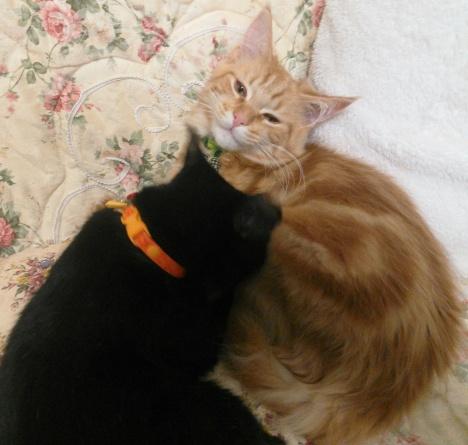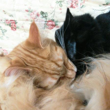 久しぶりの休みだったので朝から猫たちとのんびりしていたところ、ライアとナイルがお互いを毛づくろいし始めた。