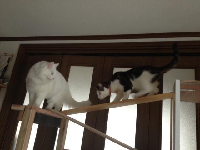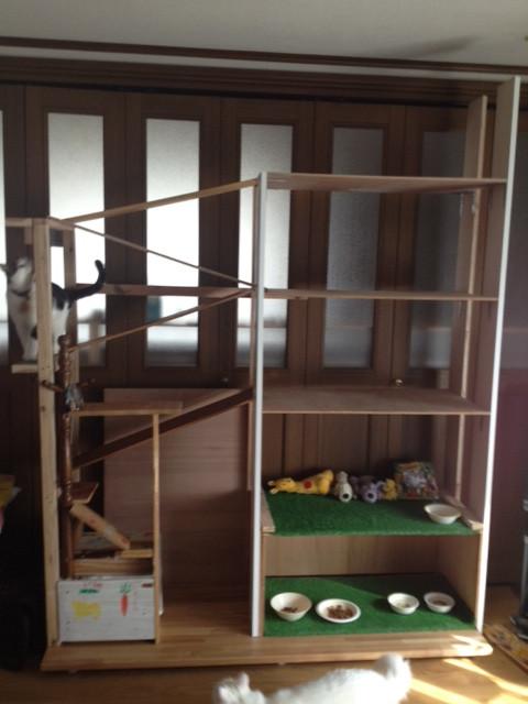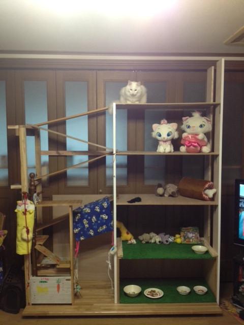 パパと息子が朝9時からキャットタワーのリフォームをやってくれていたので、
