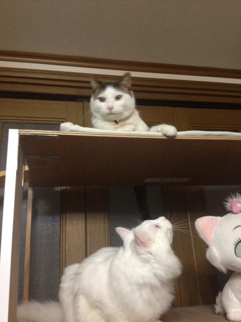 2にゃんがパパの布団の足元で寝るので、寝返りが打てないし、マリー重いって言ってました(笑