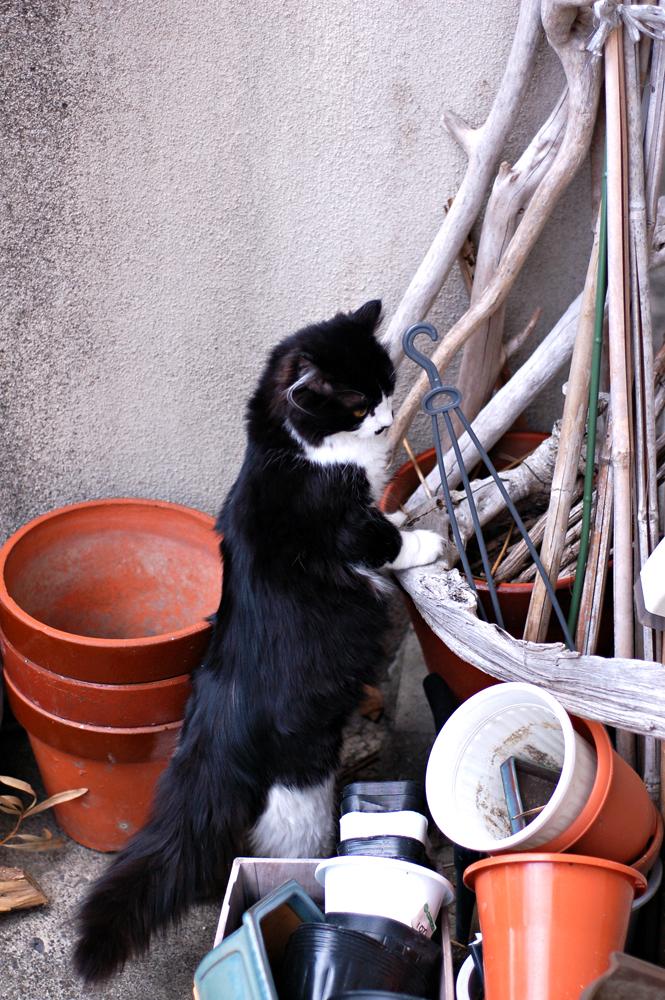 ↑庭のガラクタ置場で小さなお友達(虫)を捜す