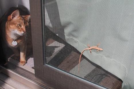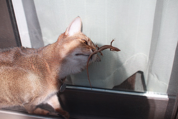 ・ニャ――! なんで掴めニャいんだー(><。)(網戸があるからです)
