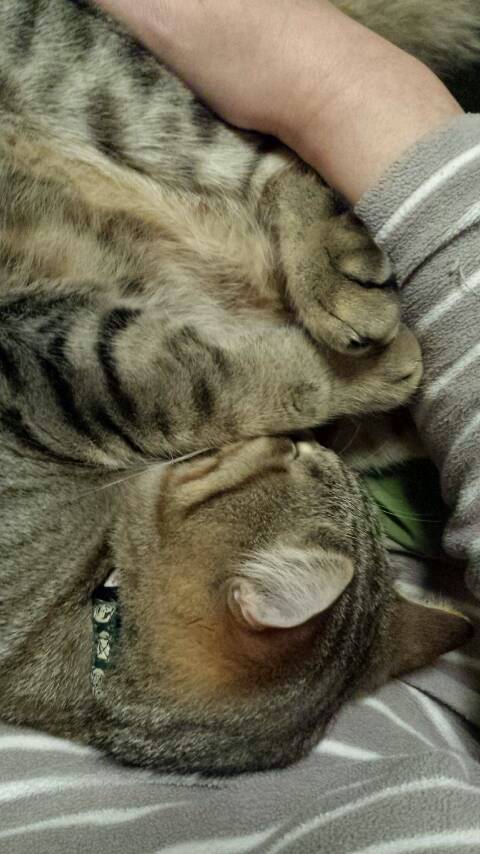 ドラくんはお腹がいっぱいになって、ワタシの膝の上に載ってきて軽~く寝てしまいました。