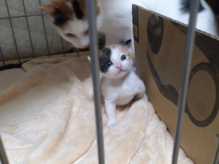 キャットタワーの上で出産しちゃって、はじめての事だったのかパニックはおさまらず、それから二日後に二ひき出産しました。噛みつき猫のまるがまさかの出産でうちの家族もパニックでした。