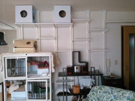 ディアウォールをはめ込み、どんどん設置して行く。そこに棚板をはめ込み完成~~!