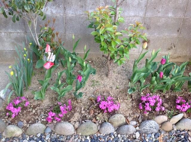 週末に、芝桜を植え、チュウリップ、水仙、さくら、金木犀!!