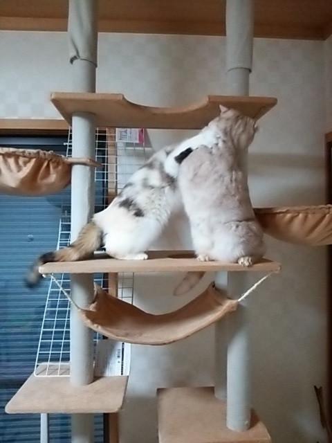 ランが自分の頭上にいるのが嫌なので(猫はそこが大事)
