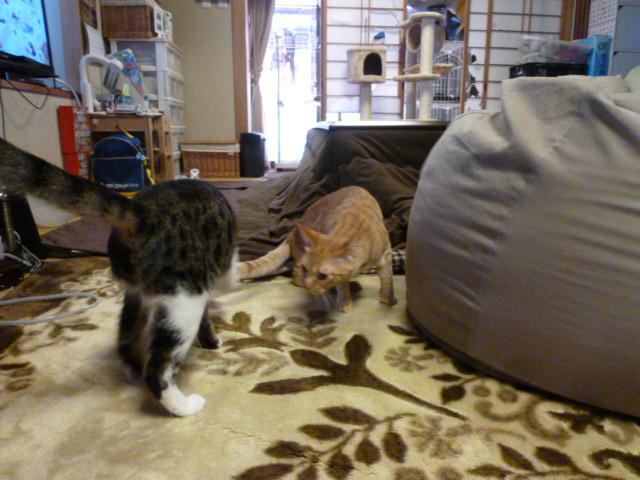 にゃんずは相変わらず落ち着きなく絡んでます。