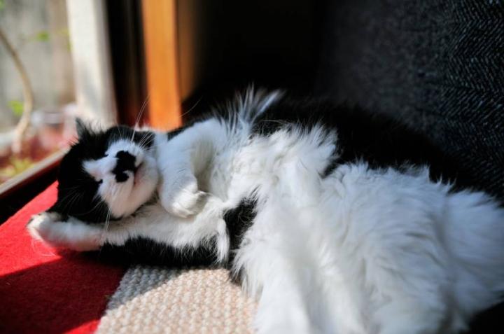 私の脇にあごを載せて、ときどきひげをちくちくさせて。