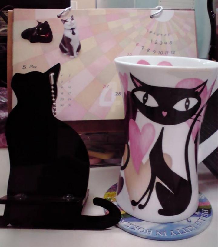 最後に、会社のPCモニター横の猫グッズコーナー。