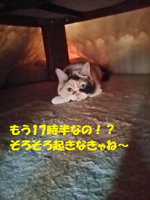 旦那のお腹とコタツの間に挟まって寝るのがいいらしい(笑)