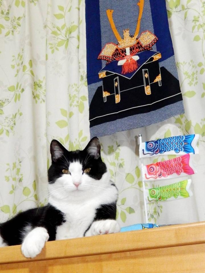 柳川に行ったときに買った絵布巾を掛け、100均で買った鯉のぼりを飾りました。