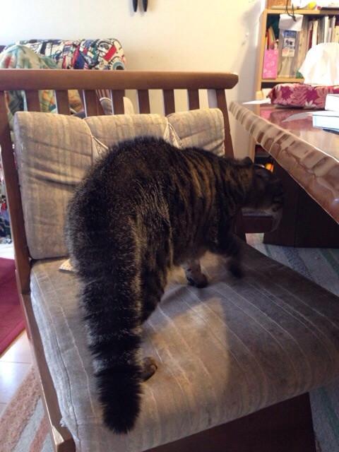 しっぽはまるでアライグマ!耳もここまで倒した姿は初めて見ました。