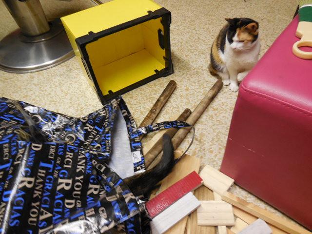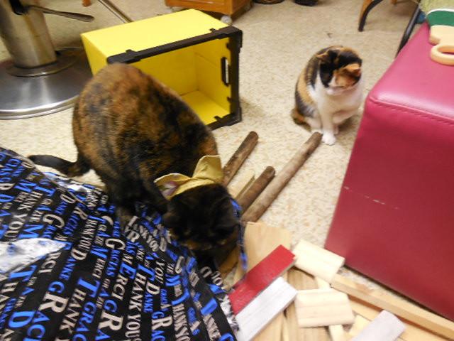 ちなみに大工作業で散らかっている中でニャンズに邪魔にされた私でした