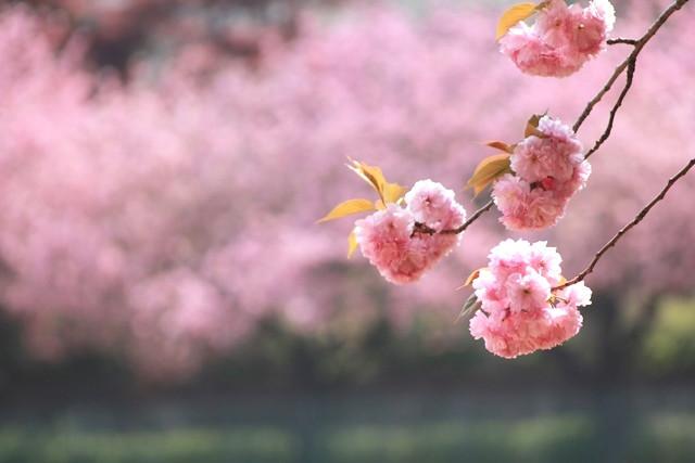 手毬のように丸っと固まって咲く、八重桜を色んなアングルや背景を入れて
