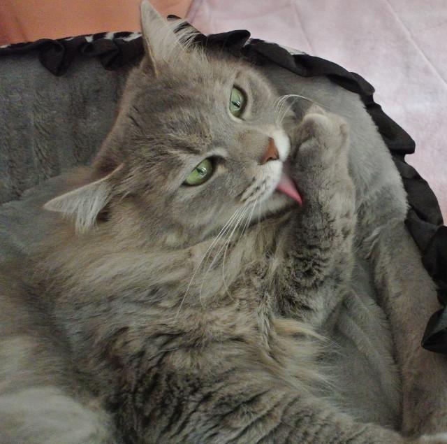 肉球を触られた後は、やっぱりなめなめして汚れを綺麗にしてました~。