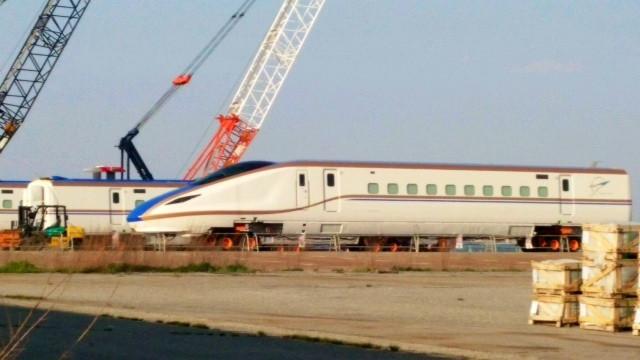 先日、ニュースでは、深夜に、金沢港から、松任駅舎へ、第一号の新幹線を、トレーラーで、陸送をしてる所を放送していました。!!
