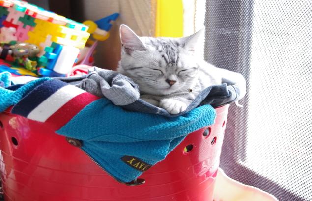 私が畳まないで、やりっ放しにしている洗濯物の上を陣取られてしまいましたヽ(#゚Д゚)ノ