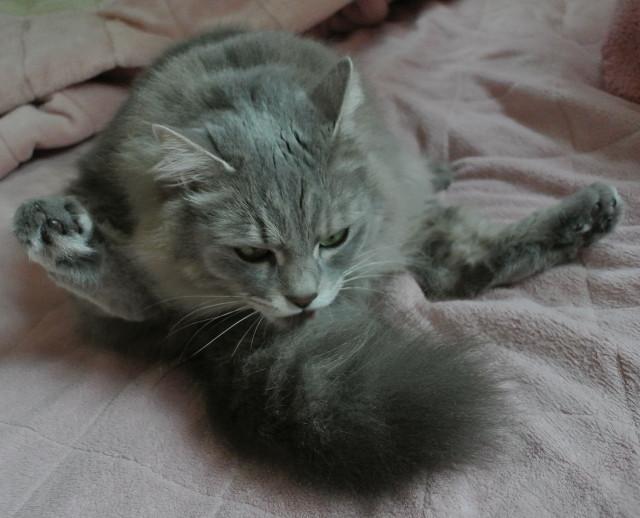 さっちゃんが私の布団の上で毛づくろいをしてるな~と思ってふと見ると、、、