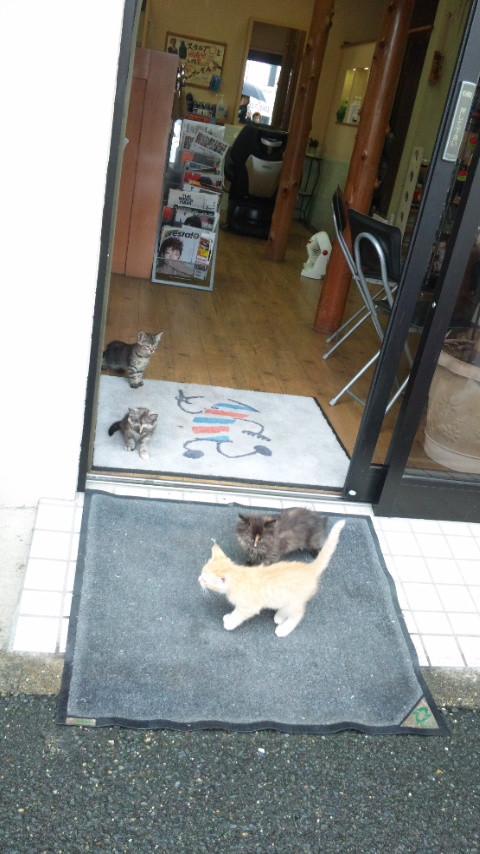 ご近所の床屋に現れた 子猫ちゃん4匹に 出会いました。