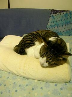 テンピュールの枕の上ですやすやと寝ています。