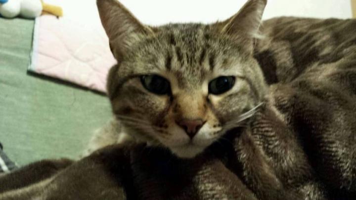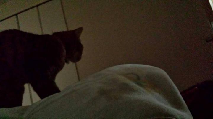 わかりにくいですがコレ、寝ているダンナさんの上で朝からニコがフミフミしてるんです。