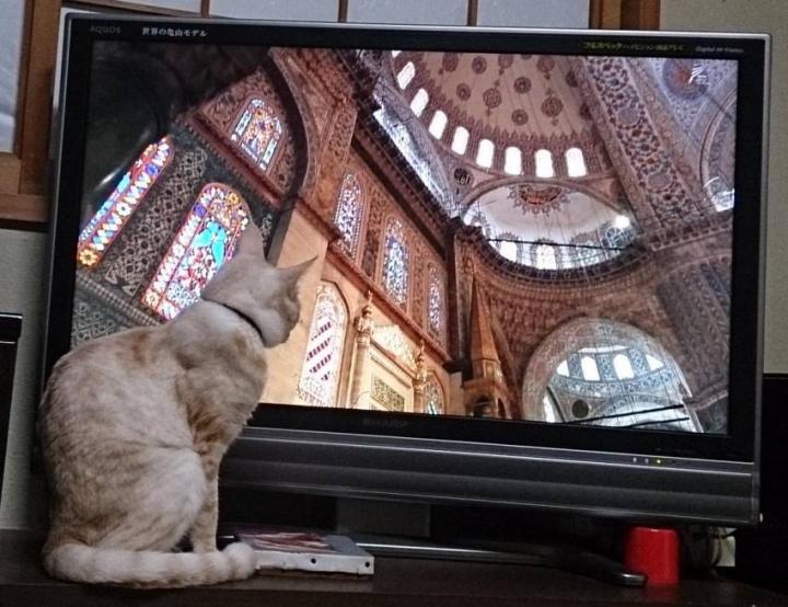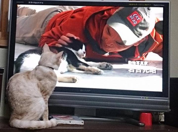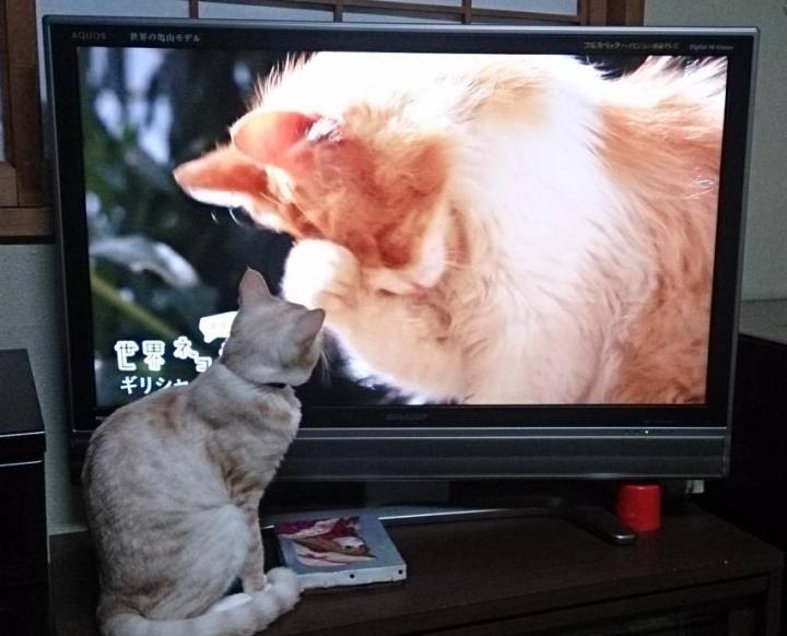 テレビの中の未知の世界を眺めるミイちゃんです♪♪