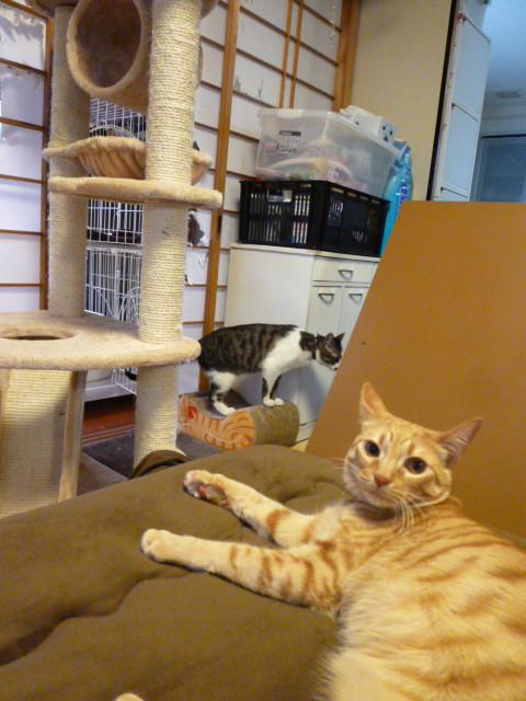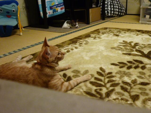 カメラ目線を向けつつも2にゃんでじゃれてました。