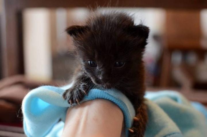 長毛ちっくで、カーリーな毛が個性的な黒猫