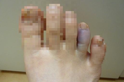 訳あって、こんな色に変色している ワタクシの右足 薬指…