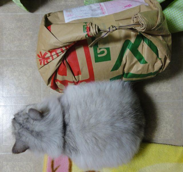 米袋の横に座ったら、なんか同じく四角形になってます。
