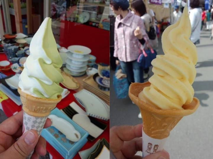嬉野茶と北海道牛乳のミックスソフトクリーム、旨し!