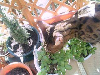 『クンクン♪バジルはいい香がするにゃぁ♪』
