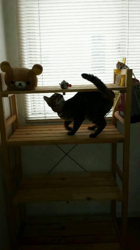 グッズが置いてあった棚は、ニャンズが登って遊べるようにそのままにしてあります。