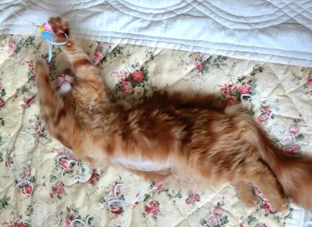 鼻を私のわきや身体に押しつけて、ふみふみ。顎下や耳の後ろと寝ぼけ眼で撫でると、ゴロゴロ言いながらうとうととするライア。