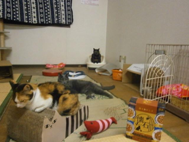 そして3ニャンズはテツやチエがいても2階でこんな感じ