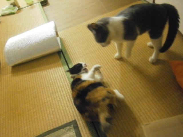 りんちゃん近づくけどテツがくるとゴロンと降参?