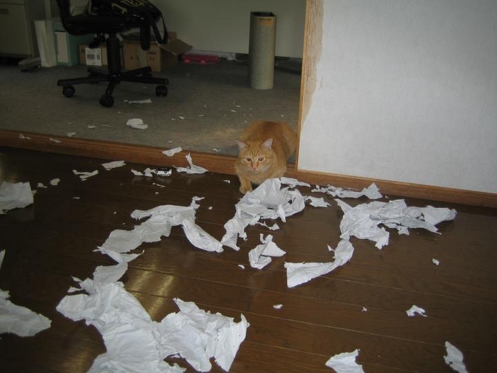 包装紙がビリビリにやぶかれて散乱していたのです。