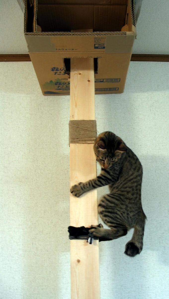 父作,自家製猫タワーです.高さは2m40cm弱です.