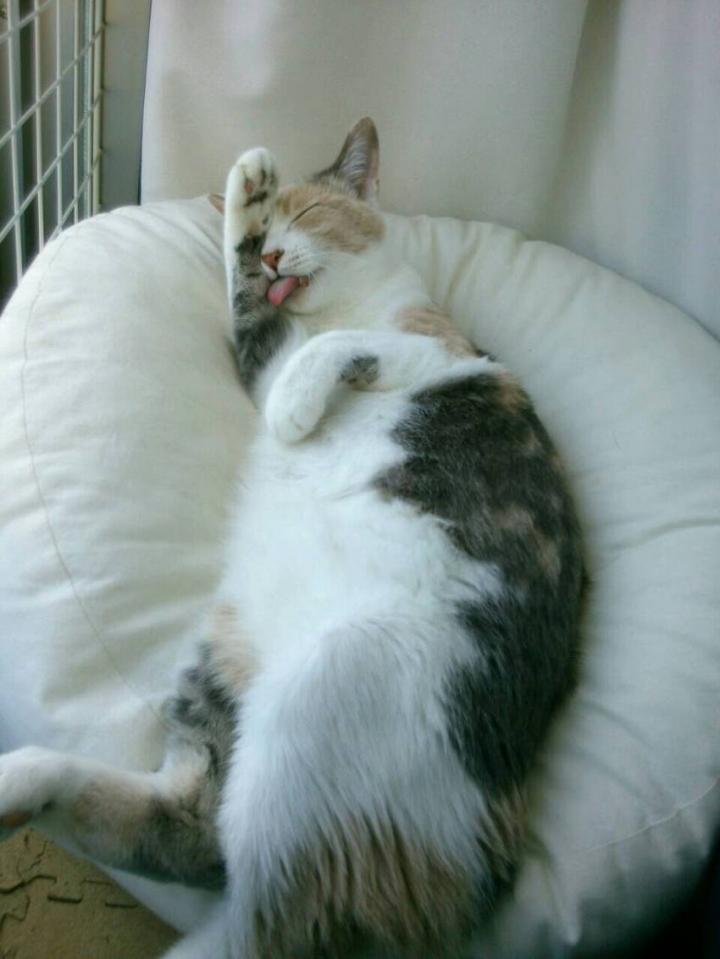 やっと毛繕いをして寝る準備、これを見るのは幸せです♪