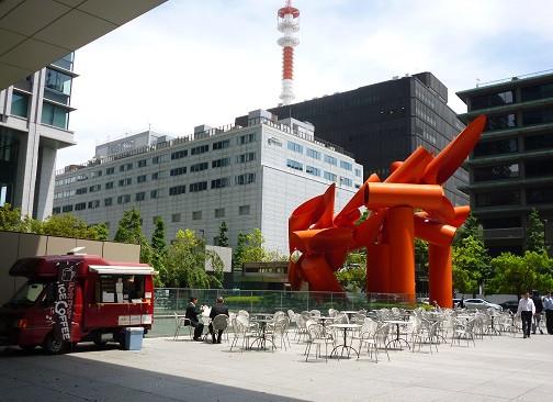 日差しも強いし…ってことで、近隣ビルの中にあるフリースペースで