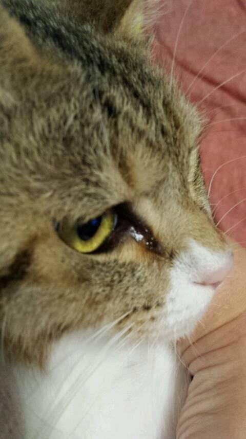 事の発端は昨日、出かけて帰ってきた時に、サクちゃんの両目から大粒の涙が鼻を伝ってました。