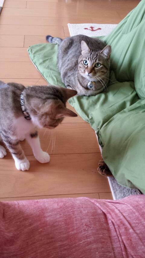 朝からニコちゃんにチョビチョビするサクちゃん。