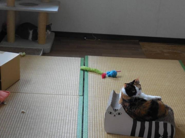 今はリンちゃんの超スピードに合わした猫タワーが小屋になっているし