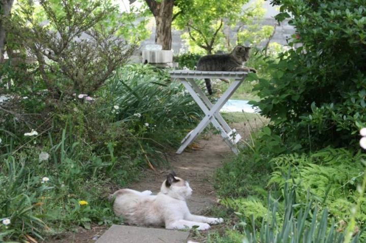 にゃんこ達も日陰でまったりとしています。