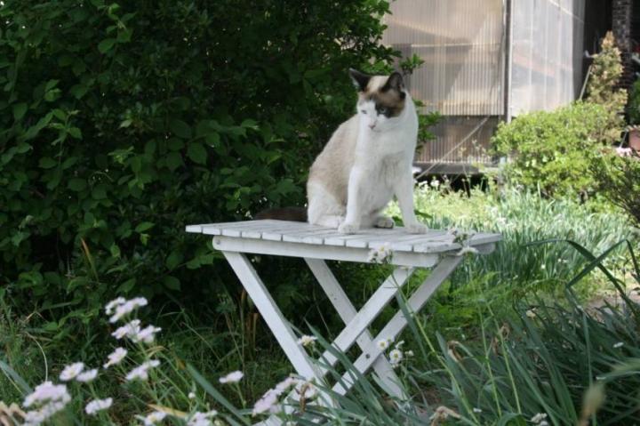白、すかさずテーブルの上へ。