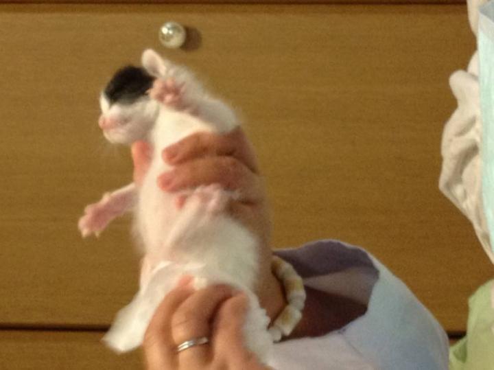 が、子猫ちゃんにミルクをあげてます~(笑)ウチは今お仕事中だから代わりにやってもらってる~。まだまだ、ミルクは手こずるけど…。先にMAMAが上手くなりそう~(泣)