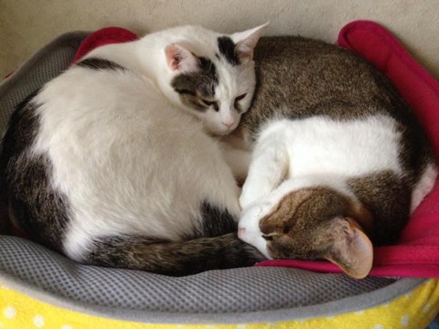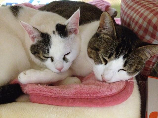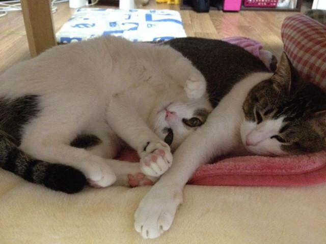 ニャンズはくっ付いてお昼寝中(_ _).。o○