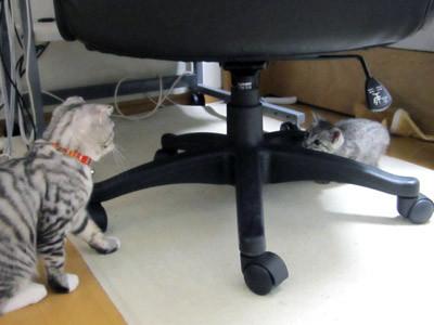 目の前で行われるニャンズプロレスを、じっくり鑑賞しているトワりん。