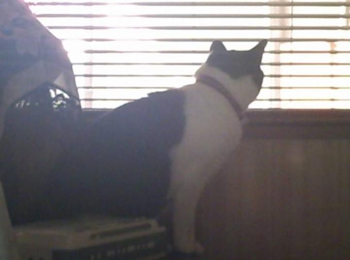 外が少し気になるようで、窓からそっとのぞいてるハチ君でした。